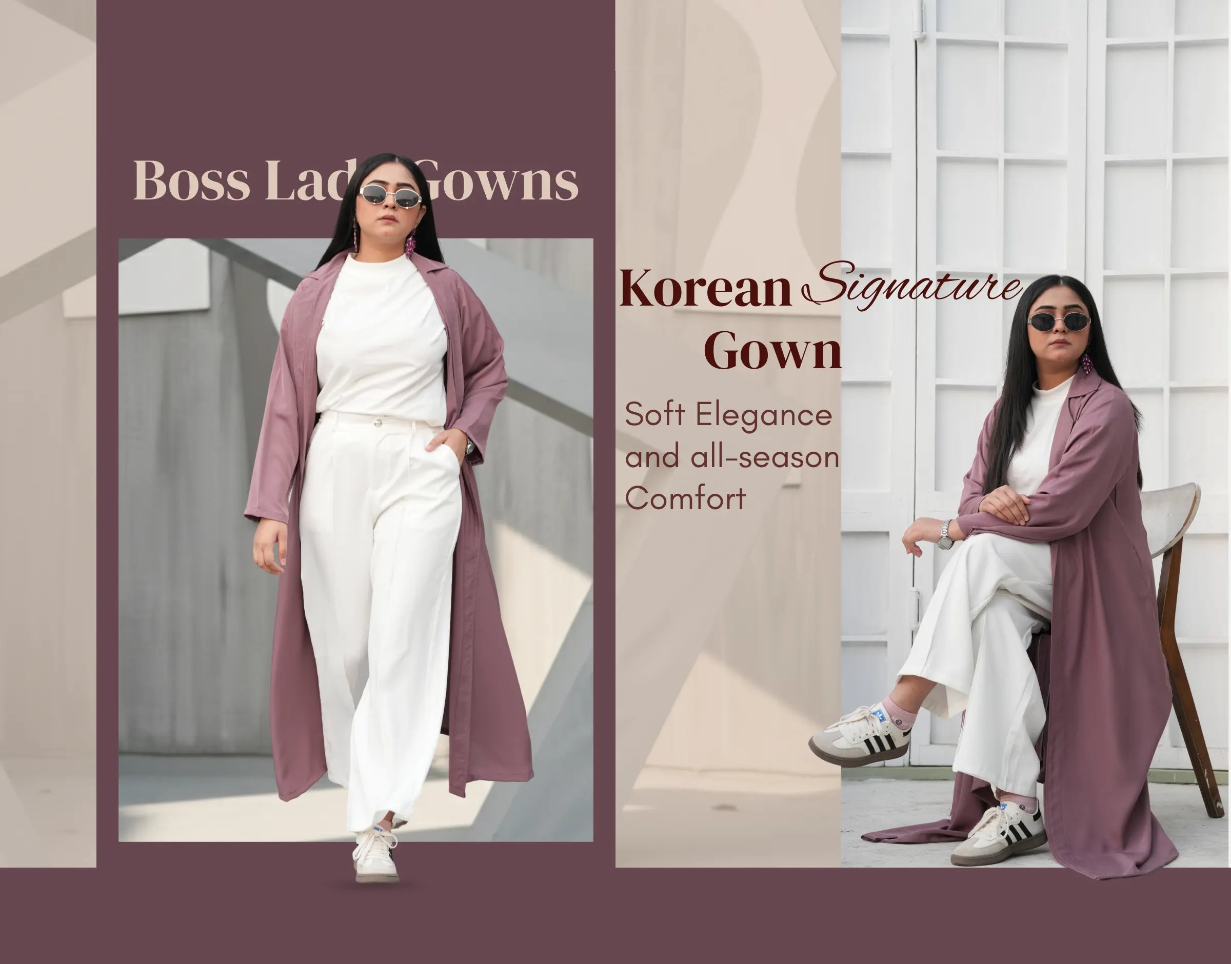 Beige Elegance | Modest Korean-Inspired Open Front Gown Pakistan