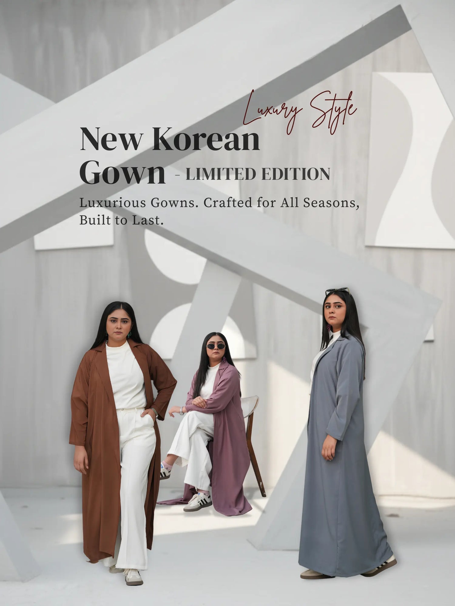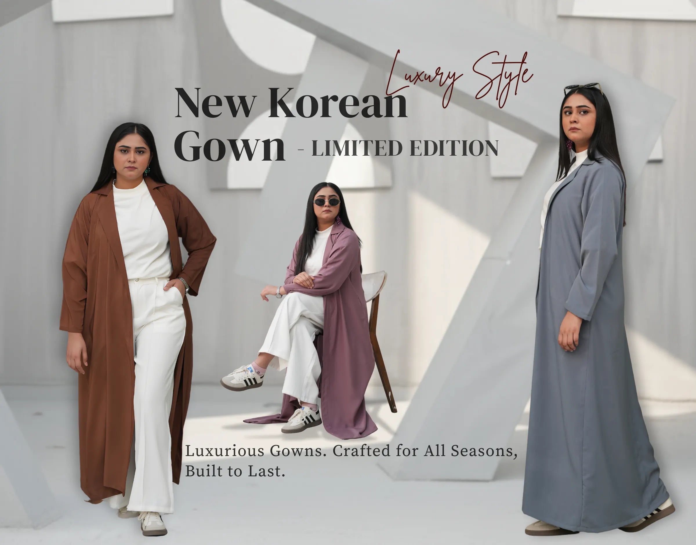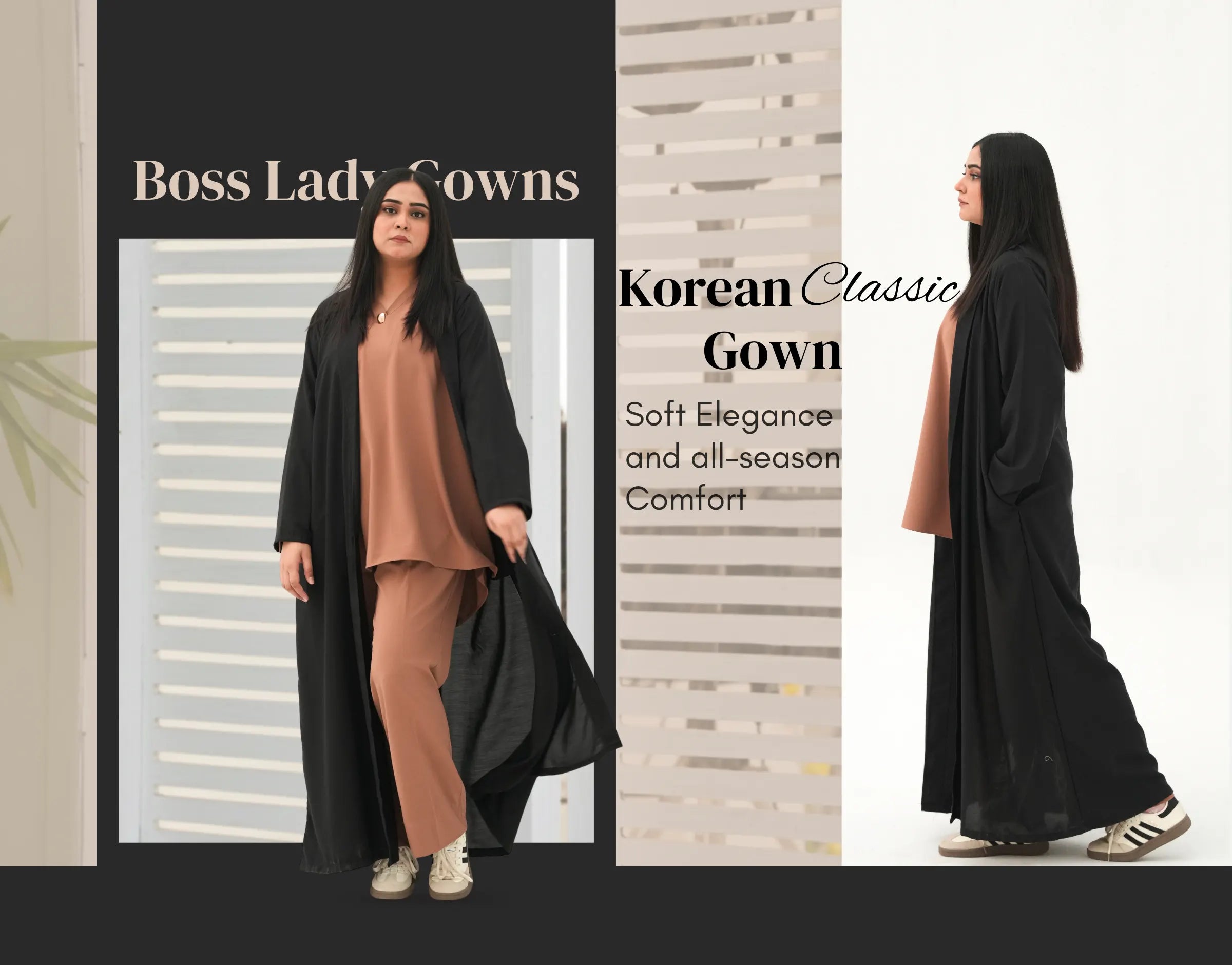 Black Elegance | Modest Korean-Inspired Open Front Gown Pakistan