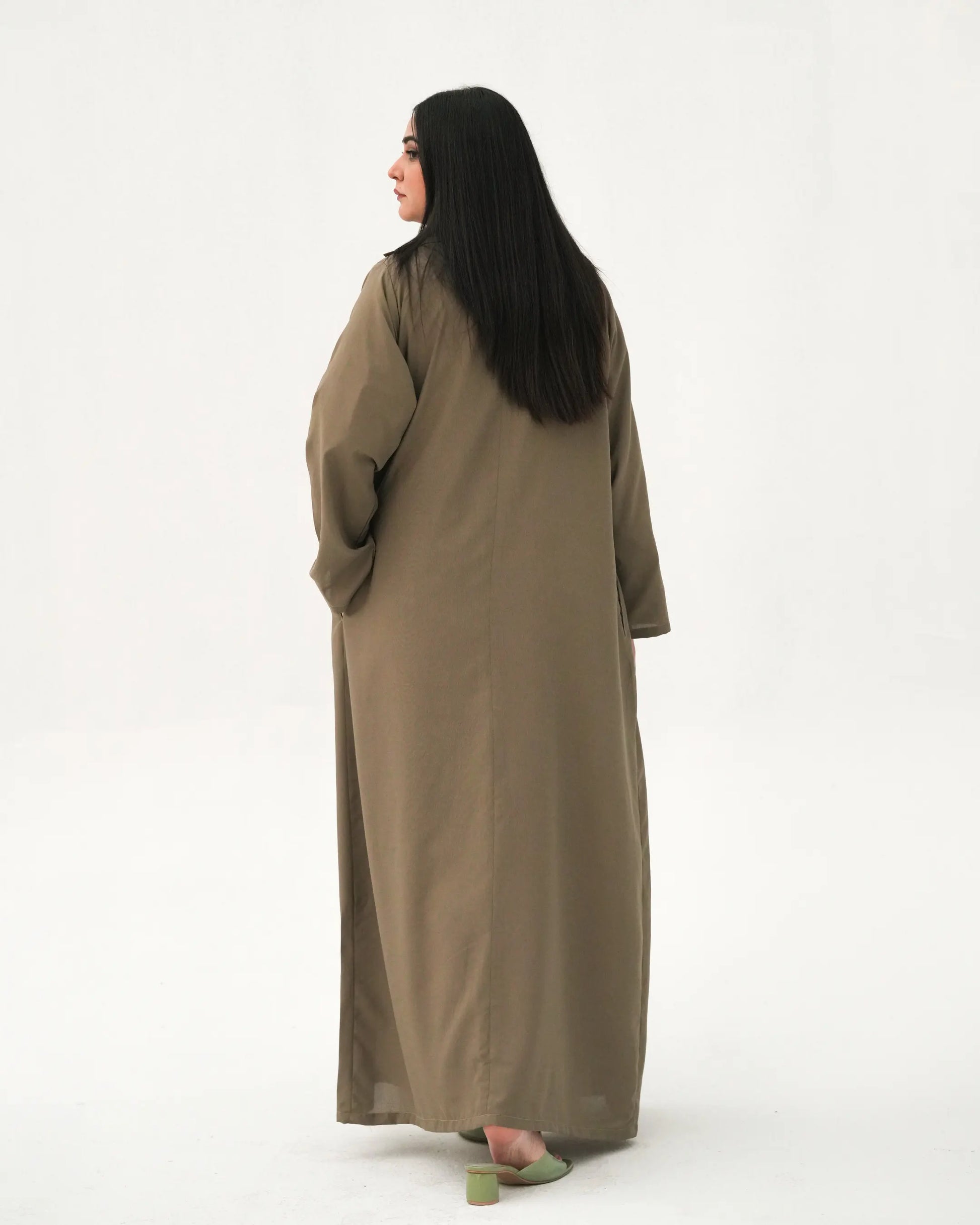 - Front open abaya style with a modest, flowy silhouette