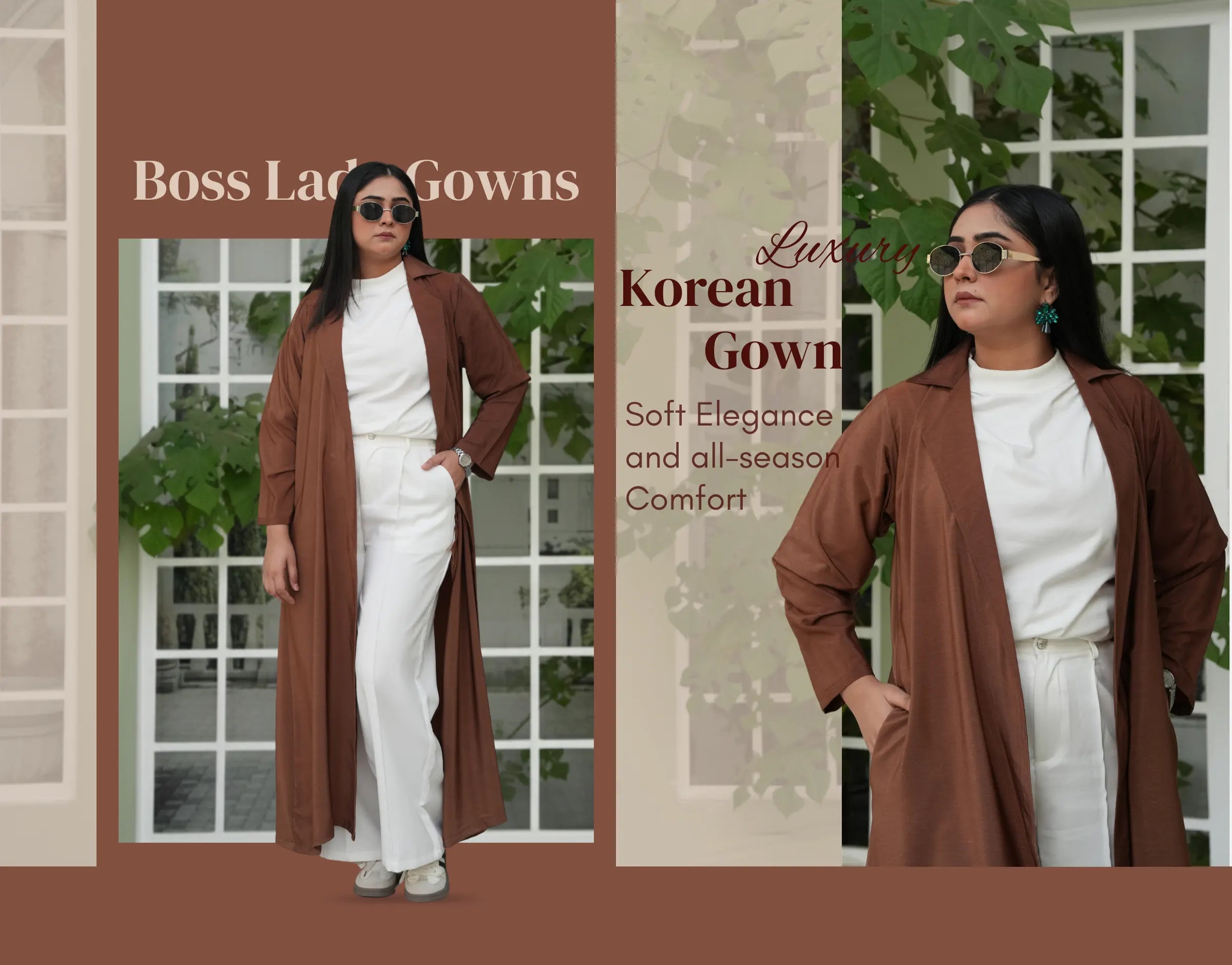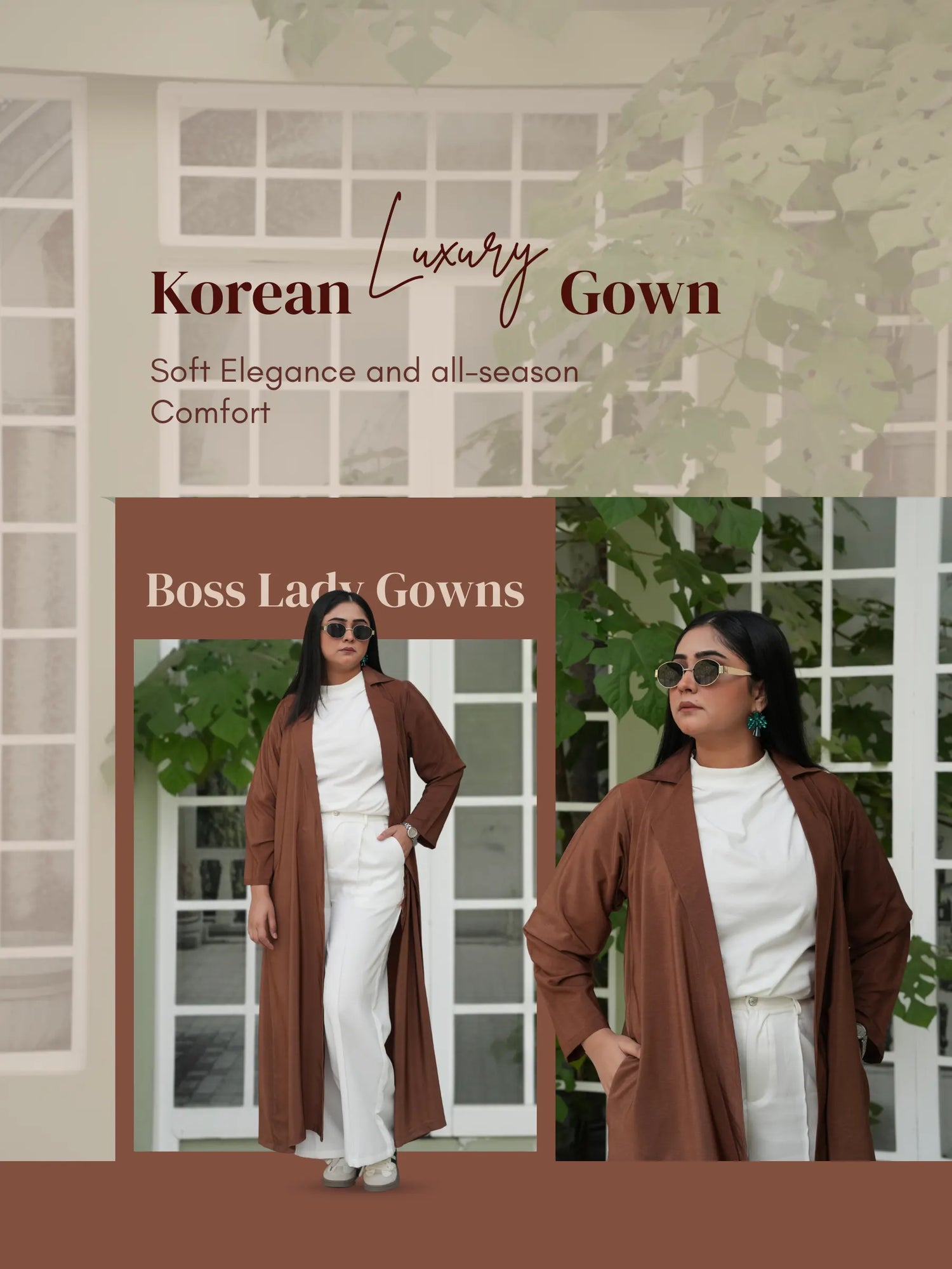 Beige Elegance | Modest Korean-Inspired Open Front Gown Pakistan