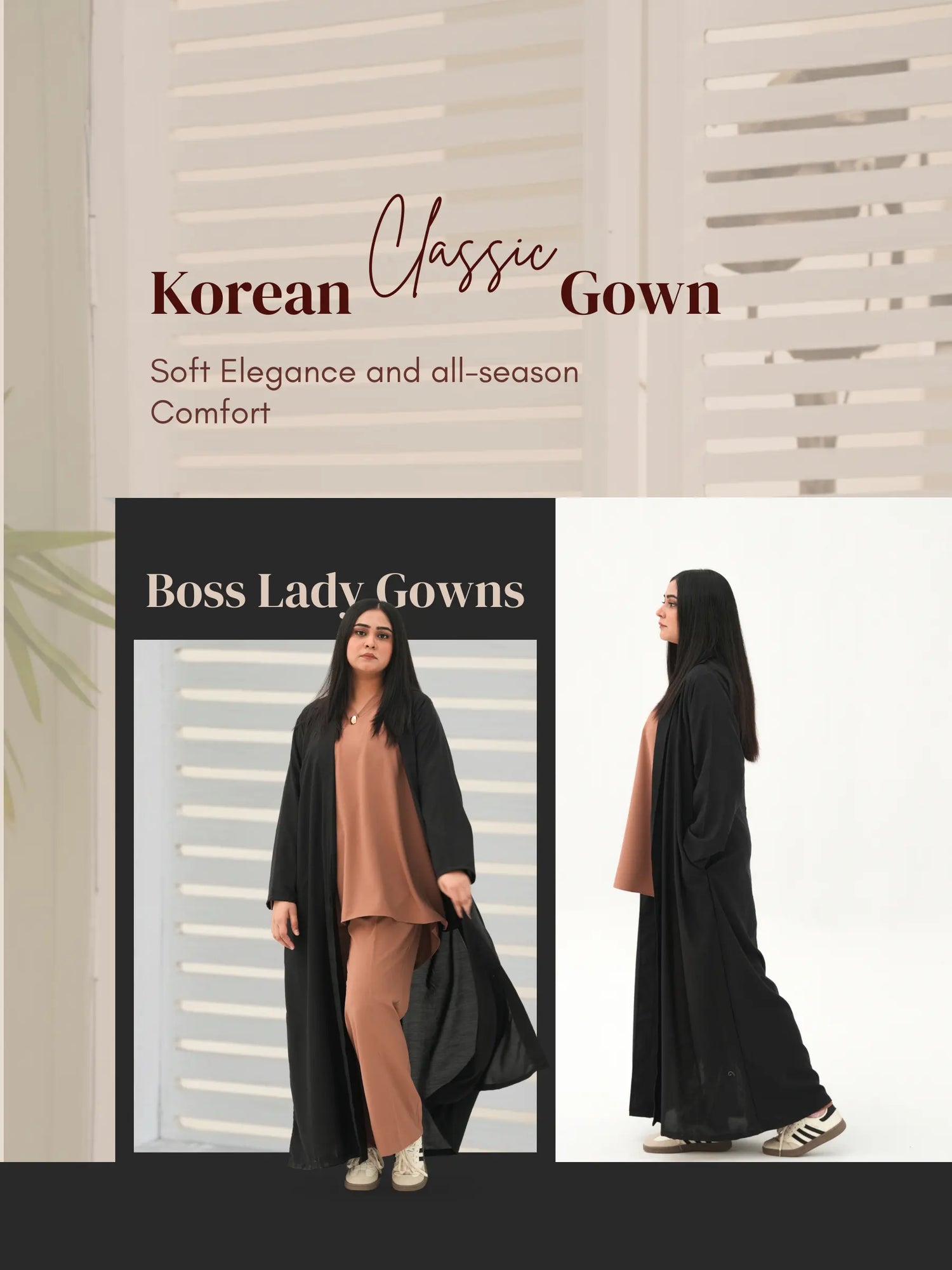 Black Elegance | Modest Korean-Inspired Open Front Gown Pakistan